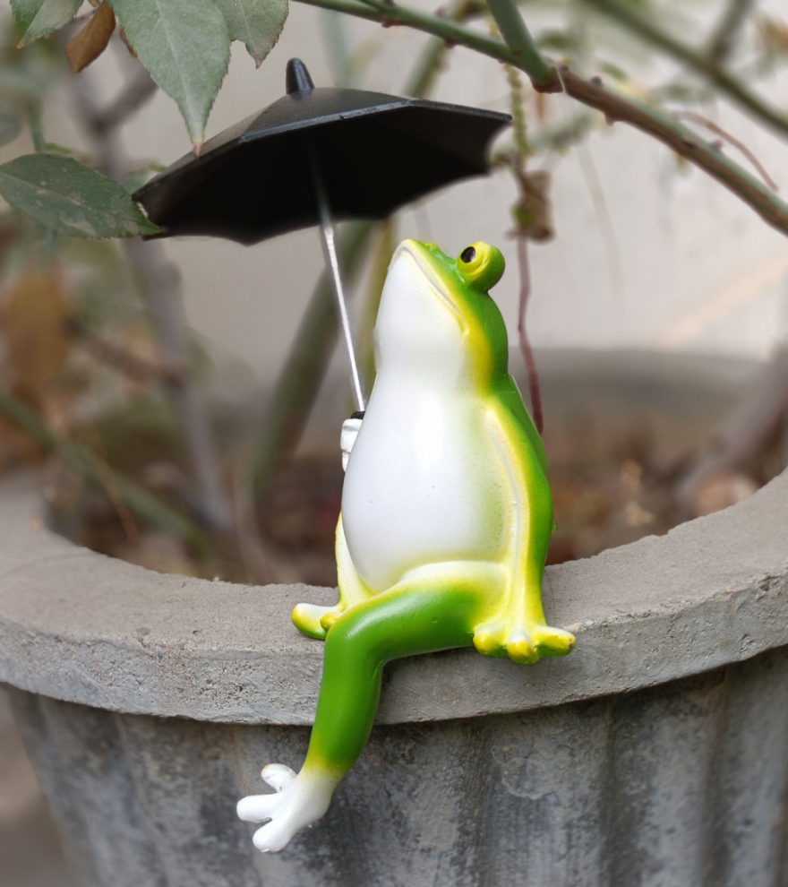 Sitting Frog with Umbrella Figurine